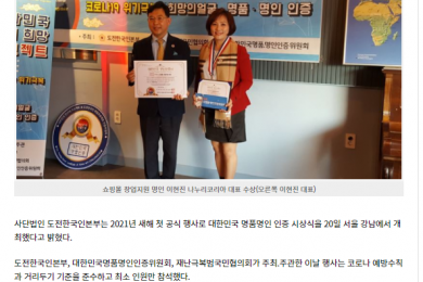 나누리코리아 이현진대표 대한민국 명품명인 인증 '쇼핑몰 창업지원 명인'부분 수상