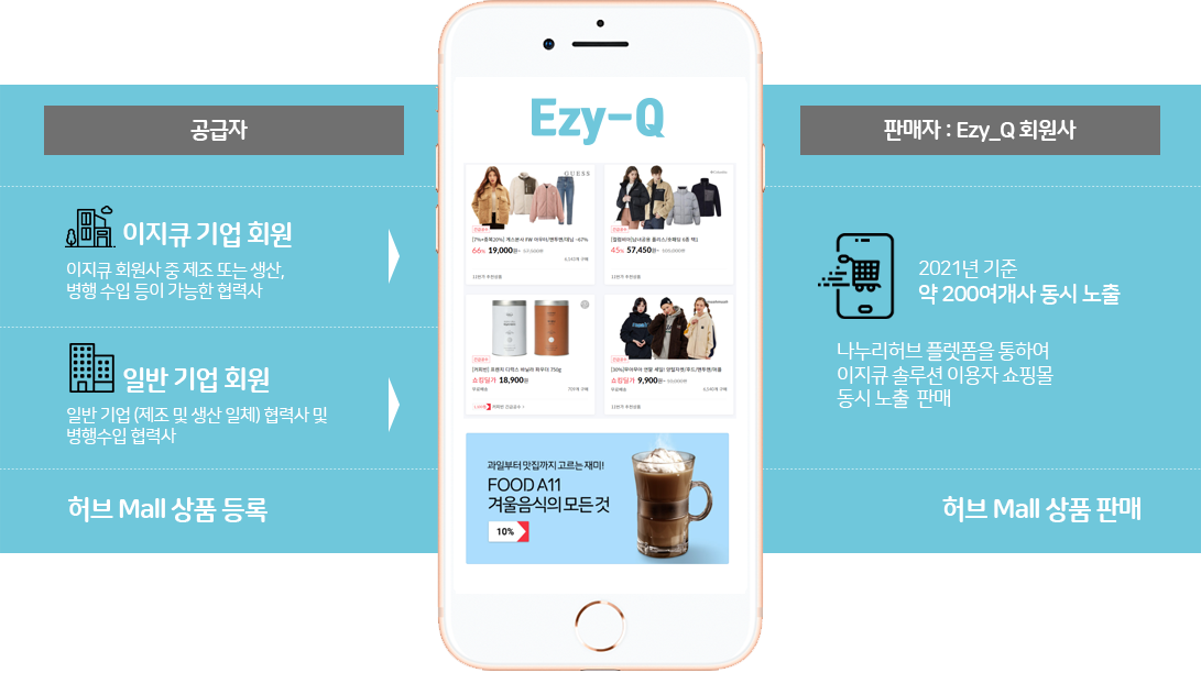 나누리 허브에서는 생산자의 다양한 제품들을 프라이빗 마켓을 통하여 온라인 판매자에게 소개하여 판매하며